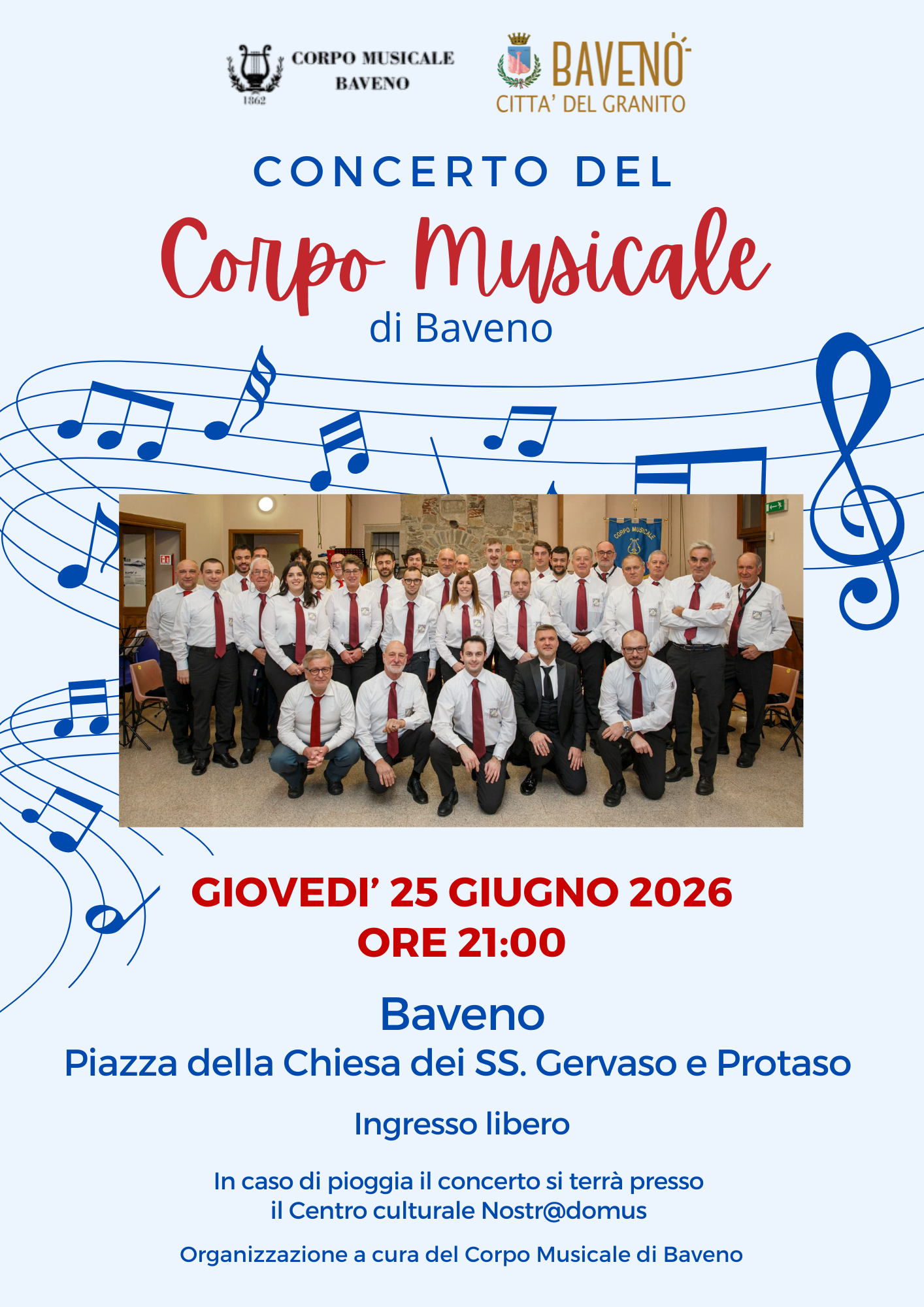 In caso di brutto tempo il concerto si terrà presso il centro culturale Nostr@domus